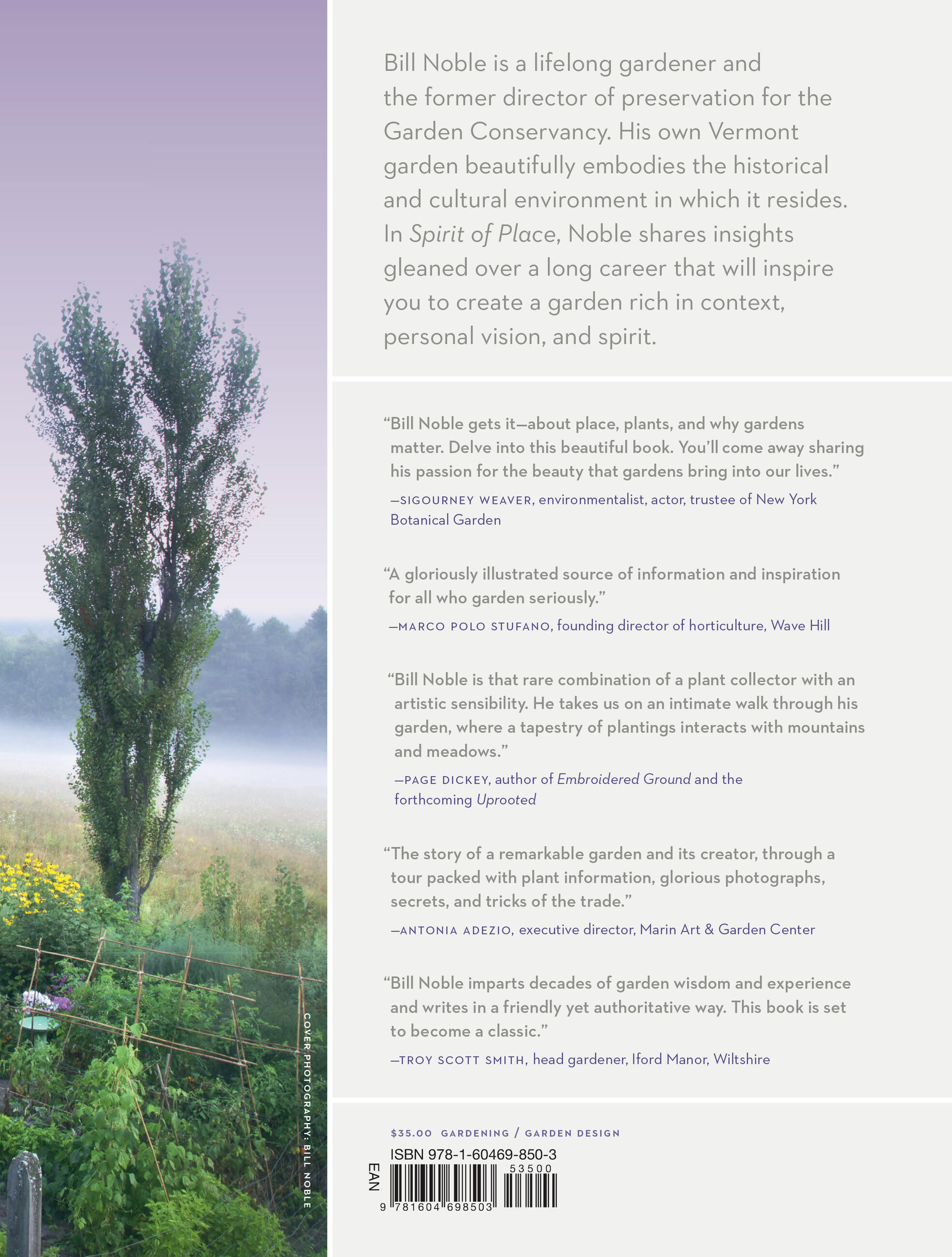 “Bill Noble gets it—about place, plants, and why gardens matter. Delve into this beautiful book. You’ll come away sharing his passion for the beauty that gardens bring into our lives.” B>Sigourney Weaver, environmentalist, actor, trustee of New York Botanical GardenWall Street Journal “Not only has Bill Noble preserved significant public and private gardens around the country—he has created an extraordinary garden at home…Noble gets into the weeds about what it took to create his own garden in his new book.” —New Hampshire Home “Bill Noble is telling the story of his own garden, and it is an object lesson on the considerations involved in the making of any garden.” —The New York Times “A lot of history, an abundance of planning and devotion, and a collection of amazing photographs. Bragg Hill is truly a place where the spirit of nature is thriving.” —The Oregonian “A thought-provoking book that nudges the reader to consider how his or her own locale and garden relate to one another, while it also offers design advice for the reader honing his or her own vision.” —Horticulture “Spirit of Place should delight most any gardener or those who dream of being. It paints a portrait of a garden that was essentially created to become or grow into a destination, or better yet, a home. After all, isn't that what a garden should be? Gardens are personal portraits of life.” —Growing with Plants “Bill Noble explores the history of New England gardens and how they were shaped by a rugged landscape, harsh climate, and European ideas about design and plantsmanship.” —Gardens Illustrated “For absolute pure inspiration, to get creative ideas for next year, you must hold a copy of Spirit of Place… Bill Noble leads us into how our gardens can be a reflection of its special place in this landscape and our needs for a spirit of place. Each page is loaded with gorgeous pictures and ideas.” —The Concord Monitor “Noble has learned a lot from his varied experiences and we can all learn something from Spirit of Place, including the inside scoop on the stars of his garden on Bragg Hill.” —Connecticut Gardener “An engaging story and one of 2020’s best garden books… Noble brings candid and enlightening observations to his book as well as practical advice and plant lists.” —Hortus “Spirit of Place offers practical knowledge and lofty aspirations to those planning or simply dreaming of a garden of their own.” —Chantecaille