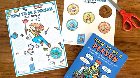 How to Be a Person printable poster with cut-and-paste merit badges!