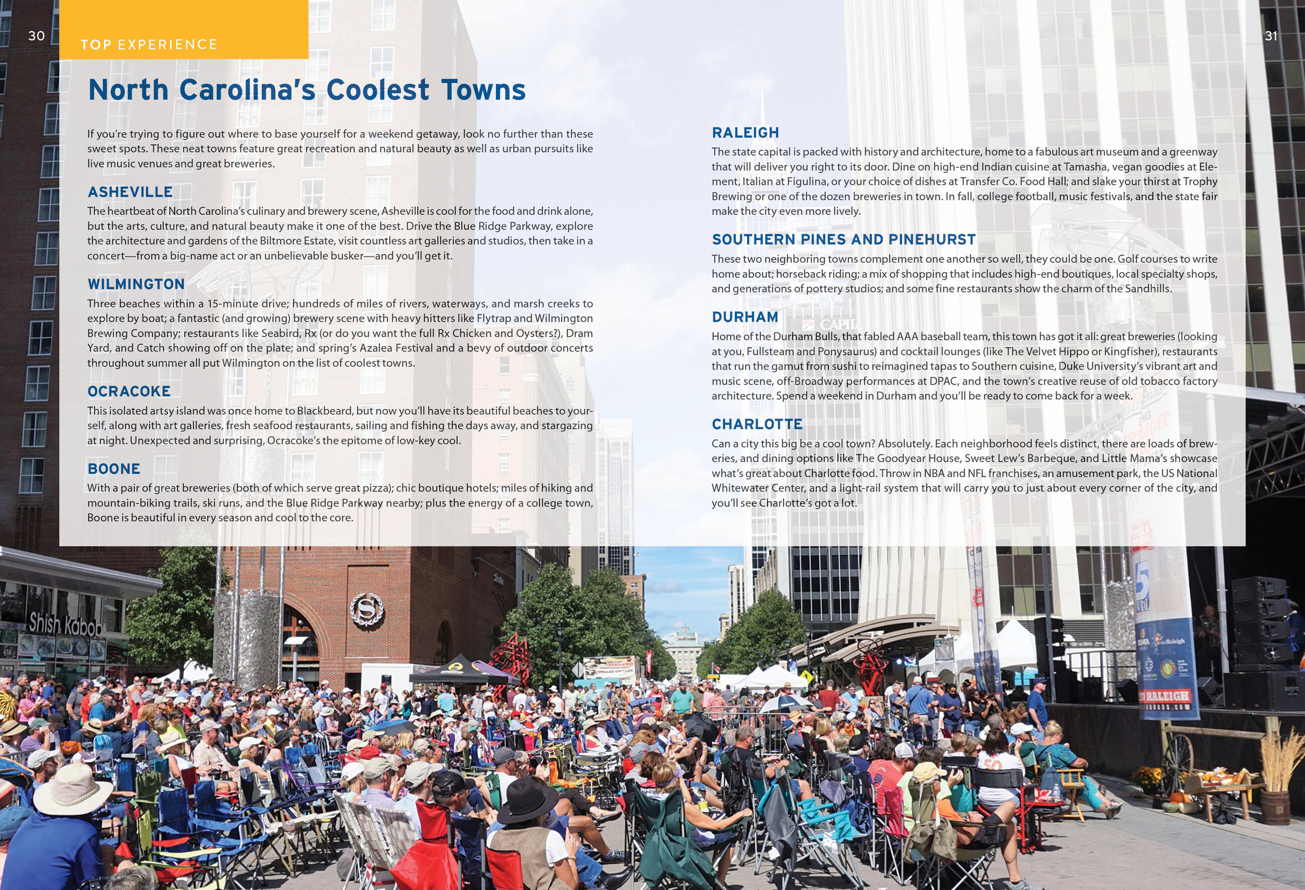 - The top local experiences: Explore the gardens of the Biltmore Estate, check out the art museum in Raleigh, or kick back with a craft beer at an outdoor concert in Wilmington. Escape to the Outer Banks for a glimpse of wild horses, historic lighthouses, and remote islands. Tap your foot to live bluegrass and dig in to famous North Carolina barbecue